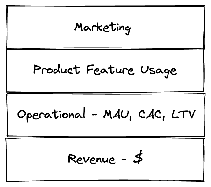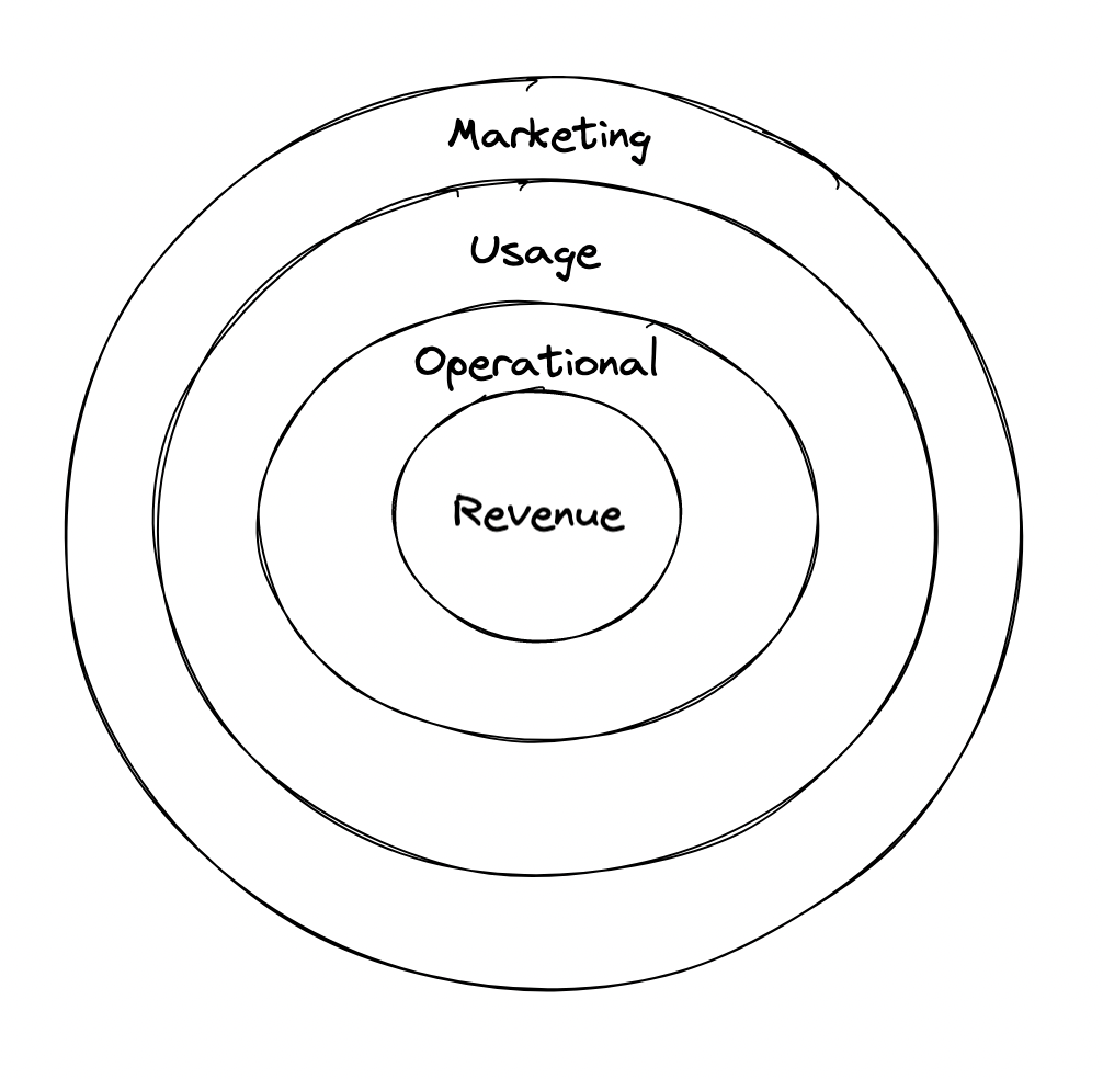 As mentioned, if your company is pre-product market fit, it may make sense to start with more traditional engagement, and usage metrics. If the business is not yet generating revenue, there's no point in starting with collecting revenue. If your company is generating revenue, then it's critically important to understand that generation.