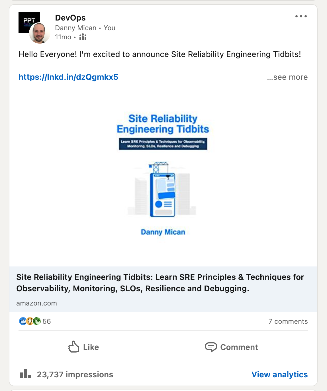 I posted a notice of publish in the LinkedIn DevOps channel, which generated 23,000 Impressions! Which is by far the largest views I've ever had on a post!