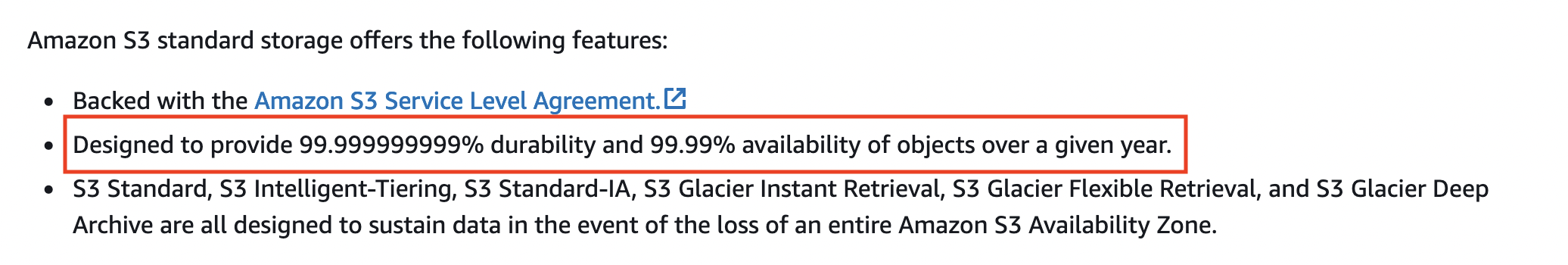 Unfortunately, the data stack numbers don't add up. No companies make a 100% guarantees, but in data 100% is assumed. Each myriad stakeholder expects 100% accuracy, something software engineering knows is impossible. Even the largest tech companies on earth won't give a 100% guarantee. Amazon offers 9 9's of availability for S3 durability. There are explicitly recognizing that data can be lost.