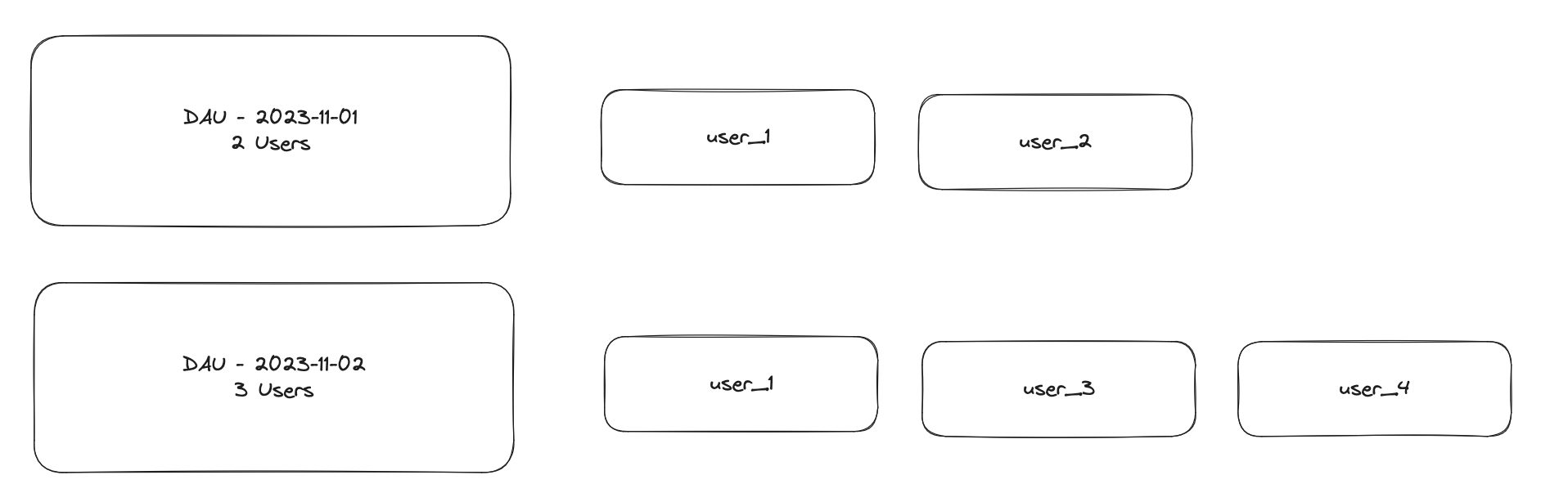 Summing these 2 days to produce a running monthly count would result in a count of 5 users (user_1, user_2, user_3, user_4, user_1), which is incorrect because it double counts user_1 on 2023-11-01 and 2023-11-02.